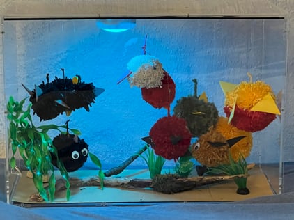 Die Klasse lernte dieses Musikstück bereits zuvor im Musikunterricht kennen und hatte auch passend dazu ein Aquarium gestaltet. Dieses Aquarium wird über einen längeren Zeitraum im Pfalztheater ausgestellt.