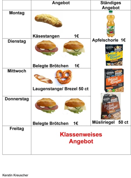Die Schülerfirma wurde als mehrjährige Schülerfirma konzipiert, so dass die jetzige Klasse 9b im Schuljahr 2025/2026 zusammen mit Frau Kreuscher und Frau Velten die Arbeiten aufgenommen hat. Auch Frau Bodden und unsere Schulsozialarbeiterin Frau Baser unterstützen uns. Aktuell befinden wir uns noch in der Anfangsphase, aber die Vorbereitung und der Verkauf laufen schon prima. Nach und nach werden jetzt die einzelnen Aufgaben verteilt und es wird eine Einführung in das Junior- Portal erfolgen. Auch in diesem Schuljahr verkauft die Schülerfirma an vier Tagen ihre Speisen und Getränke, freitags übernehmen die Klassen abwechselnd den Verkauf.