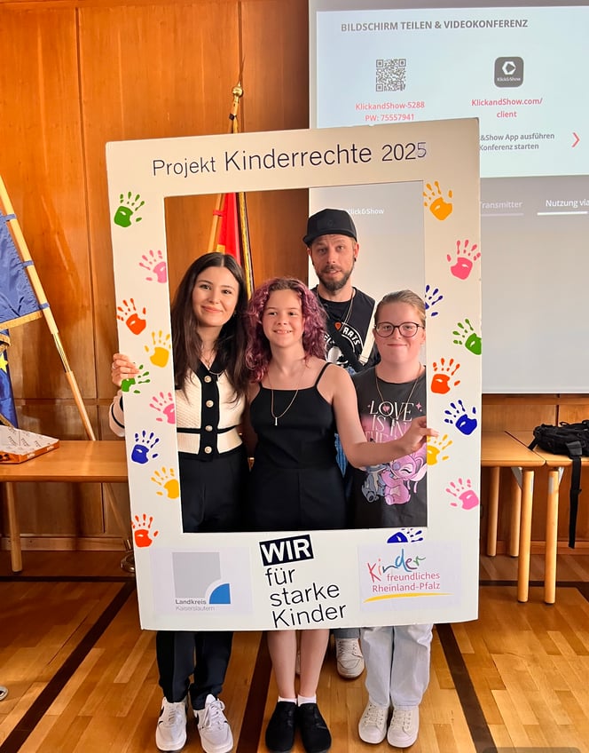 Zur Premiere des neuen Musikvideos „Kinder haben Rechte“ im Großen Sitzungssaal der Kreisverwaltung Kaiserslautern waren zahlreiche Besucherinnen und Besucher erschienen. Initiiert von der Schulsozialarbeit, hatten Schülerinnen und Schüler der Grund- und Förderschulen im Landkreis Kaiserslautern zusammen mit dem Musiker Alex Breidt einen Song erarbeitet, in dem sie ihre Gedanken zum Thema Kinderrechte zum Ausdruck brachten.